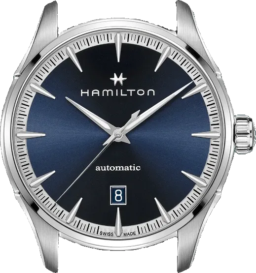 upper part of blue leather strap - delugs Navy Epsom Slim Strapfront view of the watch case of H32475140 - Hamiltonlower part of blue leather strap - delugs Navy Epsom Slim Strap