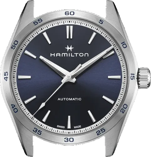 upper part of blue leather strap - delugs Navy Epsom Slim Strapfront view of the watch case of H36215640 - Hamiltonlower part of blue leather strap - delugs Navy Epsom Slim Strap