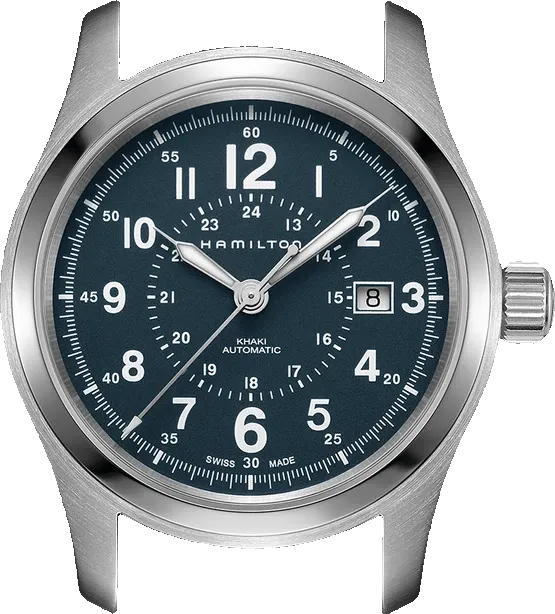 upper part of blue leather strap - delugs Navy Epsom Slim Strapfront view of the watch case of H70605143 - Hamiltonlower part of blue leather strap - delugs Navy Epsom Slim Strap