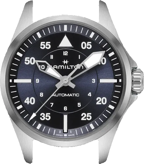upper part of blue leather strap - delugs Navy Epsom Slim Strapfront view of the watch case of H76215140 - Hamiltonlower part of blue leather strap - delugs Navy Epsom Slim Strap