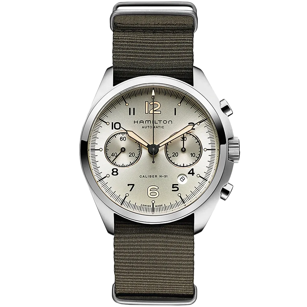 Perfect strap combination for your Hamilton Khaki Aviation Khaki Pilot Pioneer Auto Chrono timepiece