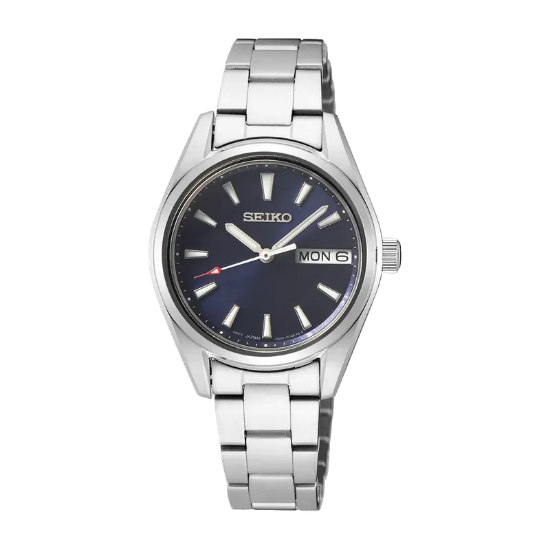 upper part of blue leather strap - delugs Navy Epsom Slim Strapfront view of the watch case of SUR353 - Seikolower part of blue leather strap - delugs Navy Epsom Slim Strap