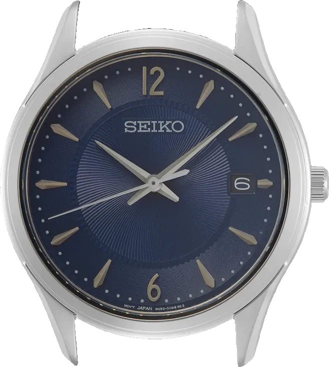 upper part of blue leather strap - delugs Navy Epsom Slim Strapfront view of the watch case of SUR419 - Seikolower part of blue leather strap - delugs Navy Epsom Slim Strap