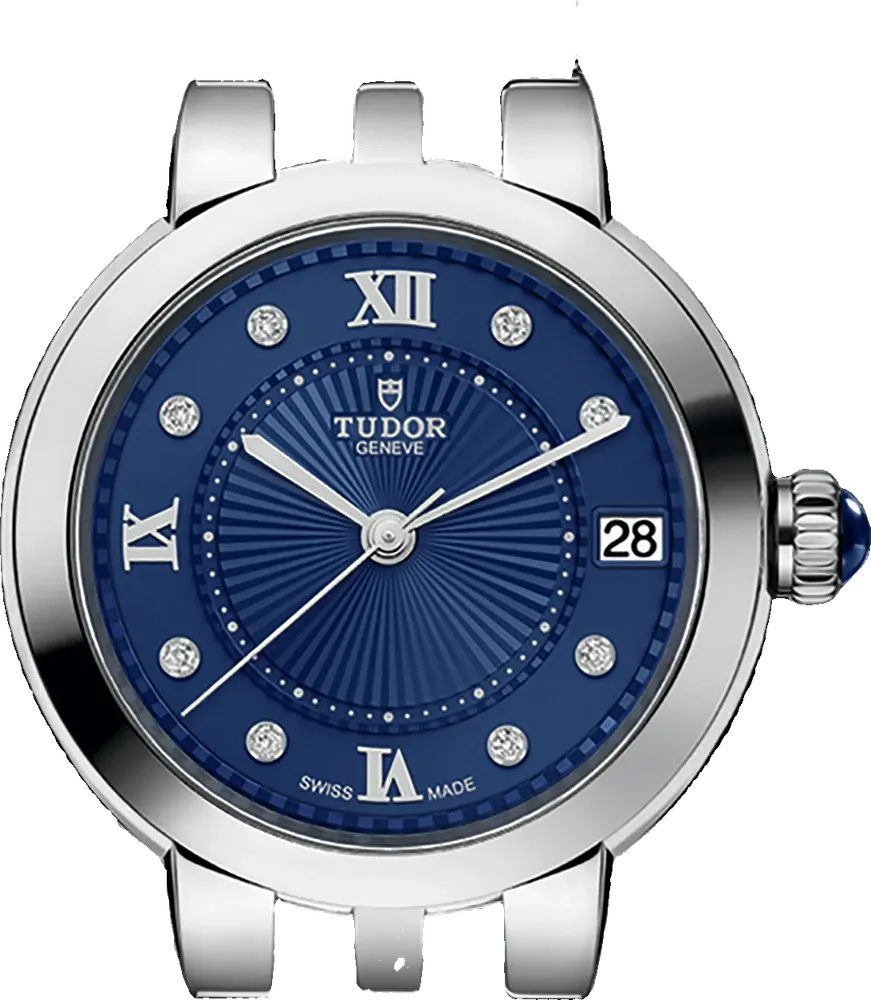 upper part of blue leather strap - delugs Navy Epsom Slim Strapfront view of the watch case of m35800-0010 - Tudorlower part of blue leather strap - delugs Navy Epsom Slim Strap
